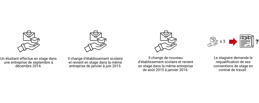 Si chaque convention de stage respectait la durée des 6 mois maximum, le stagiaire avait tout de même effectué 10 mois de stage au total sur la même année d’enseignement (septembre 2014 à juin 2015) dans la même entreprise d’accueil, peu importe que l’établissement scolaire ait été différent. La durée maximale des 6 mois sur l’année d’enseignement est donc dépassée.
